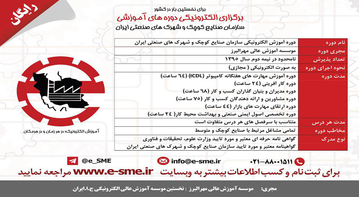 علاقمندان می توانند جهت ثبت نام و کسب اطلاعات بیشتر به سایت www.e-sme.ir مراجعه نمایند.
