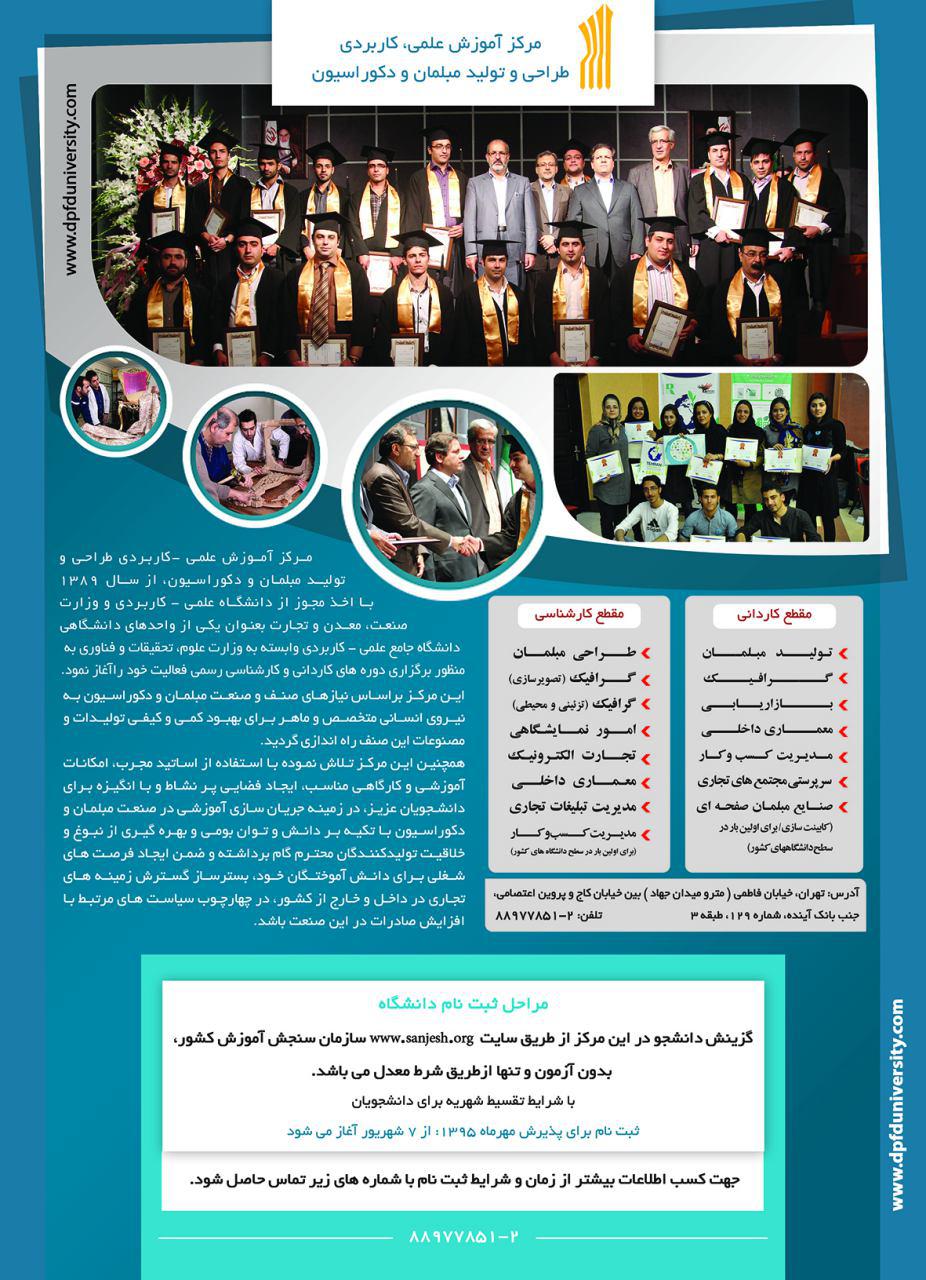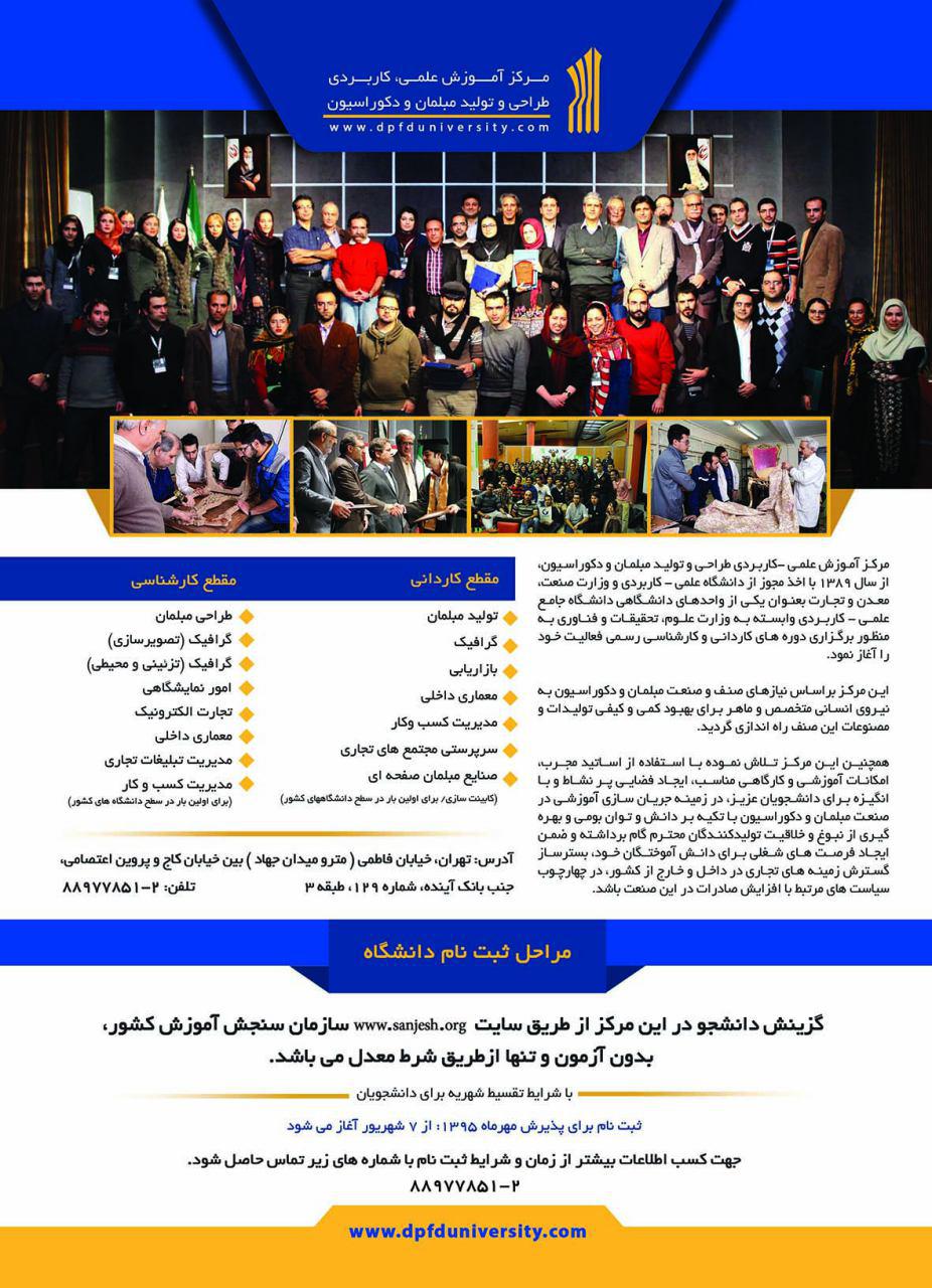 مرکز علمی کاربردی مبلمان و دکوراسیون برای پذیرش مهر۹۵ در مقطع کارشناسی بدون کنکور دانشجو می پذیرد: